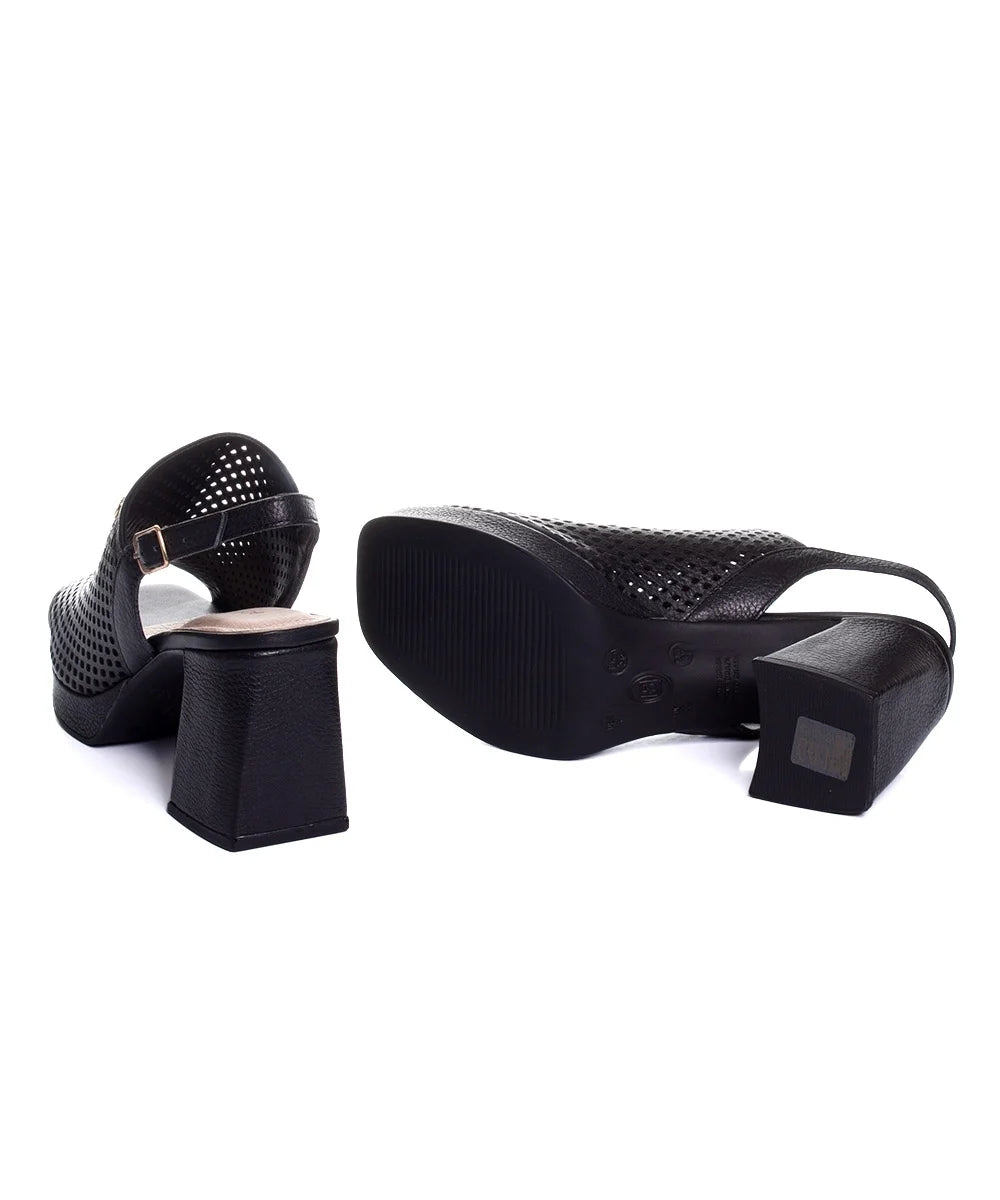 A Sandália Bottero Salto Médio é confeccionada em couro de alta qualidade, com delicados microfuros a laser que adicionam charme e sofisticação ao design.